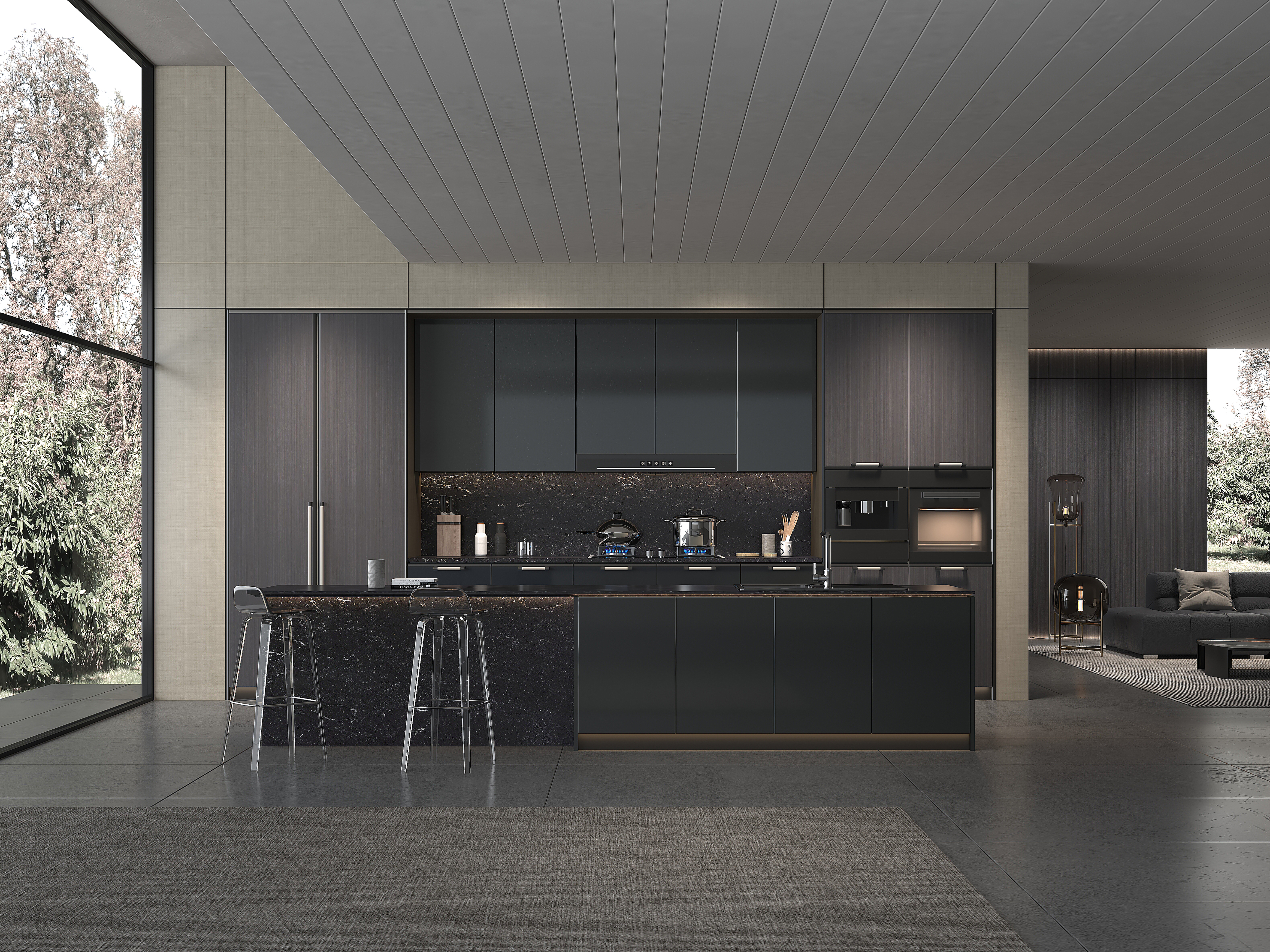 現代化融合輕奢空間細節處勾勒出摩登新奢氣息烤漆質(zhì)感門(mén)板搭配天然石材肌理融合島臺的設計,高檔又易打理,輕松滿(mǎn)足多重社交場(chǎng)景,多人共同奢享滋味生活。