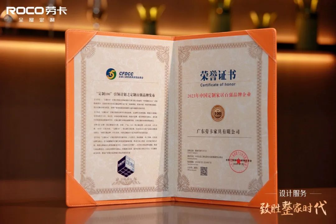 勞卡受邀出席本屆大會(huì ),憑借口碑和產(chǎn)品質(zhì)量的優(yōu)秀表現榮獲“2023年中國定制家居百強品牌企業(yè)”稱(chēng)號,整家定制20強!
