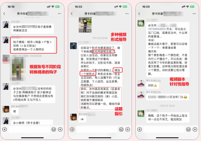 總部老師陪跑后,優(yōu)化了文案結構,開(kāi)頭鉤子、中間的過(guò)程引導、話(huà)題的設計、結尾的引導話(huà)術(shù),經(jīng)過(guò)一步步的優(yōu)化整個(gè)視頻的腳本結構后,輕松突破賬號的流量池。