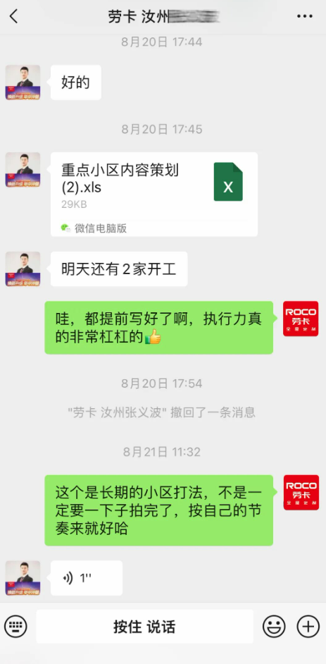 汝州經(jīng)銷(xiāo)商能達到這樣的成績(jì),在陪跑過(guò)程中更是找準了一個(gè)爆破方法——重點(diǎn)小區爆破。剛開(kāi)始是看到明天哪些工地可以拍,當天寫(xiě)好腳本讓老師修改,第二天就立馬過(guò)去,經(jīng)常出現過(guò)業(yè)主突然出門(mén)又拍不了的情況,比較盲目。