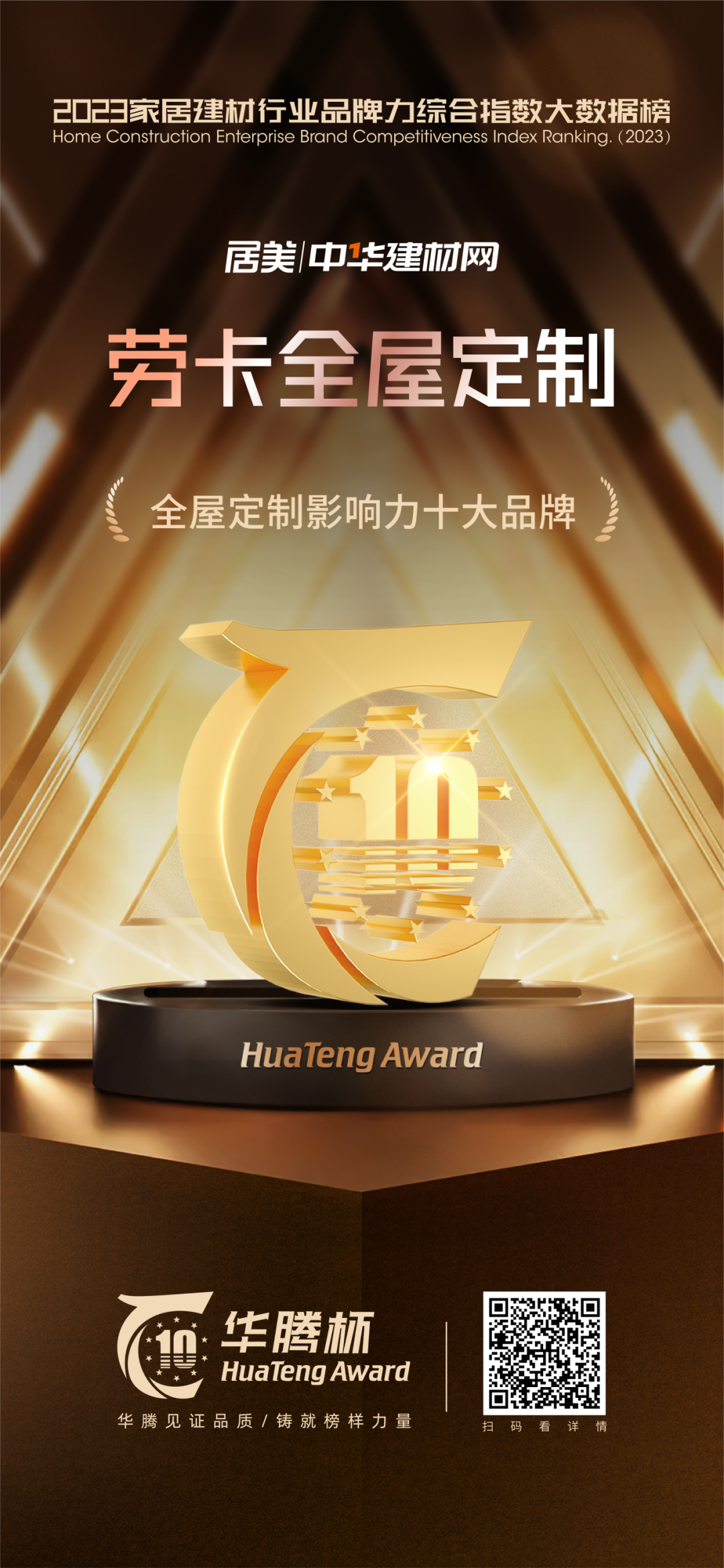 勞卡此次榮獲“華騰杯”2023年全屋定制影響力十大品牌,這是對我們不懈追求卓越品質(zhì)和頂尖質(zhì)量的認可和褒獎。未來(lái),我們將繼續努力,不斷提升品質(zhì)和服務(wù),為客戶(hù)創(chuàng )造更多美好的家居體驗。未來(lái)與勞卡一起,共享卓越品質(zhì)!