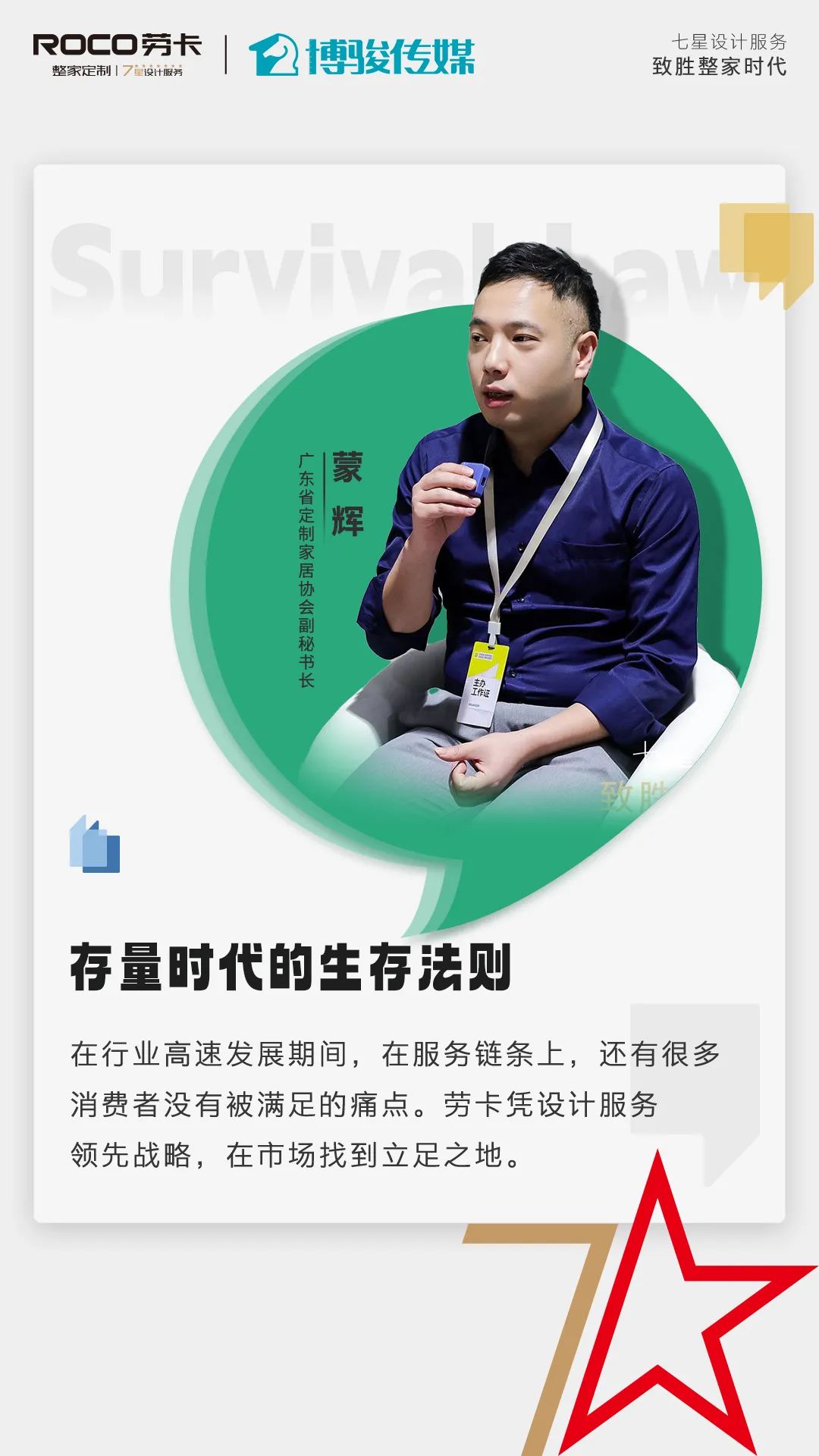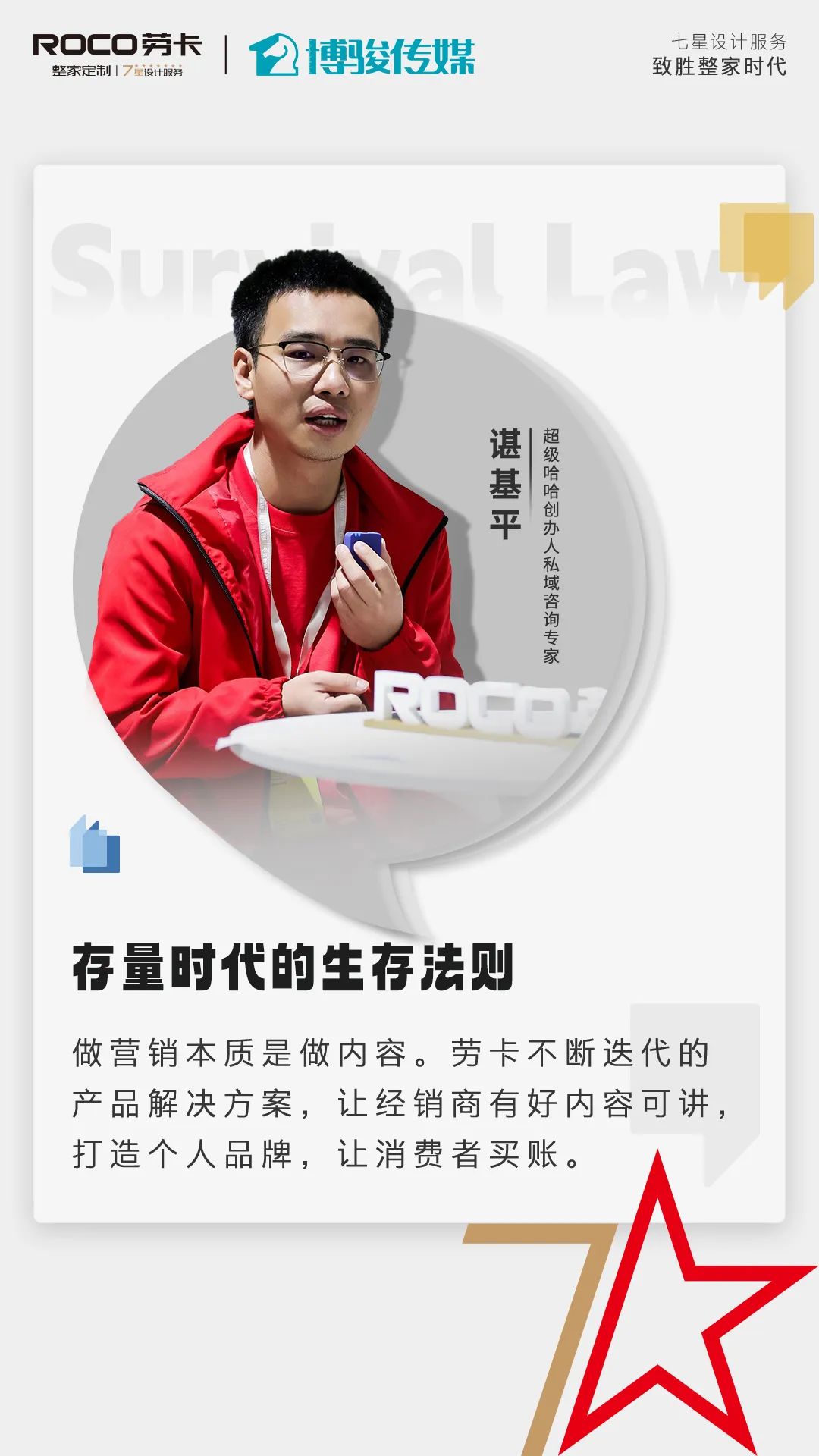 進(jìn)入存量博弈時(shí)代,家居經(jīng)銷(xiāo)商普遍面臨增長(cháng)疲軟、行業(yè)內卷、經(jīng)營(yíng)能力轉型困難等問(wèn)題。企業(yè)如何建立穩健經(jīng)營(yíng)之道、如何高效引流解決獲客痛點(diǎn),是橫亙在所有家居企業(yè)面前亟需解決的難題。展會(huì )期間,勞卡營(yíng)銷(xiāo)中心總經(jīng)理江辰、廣東省定制家居協(xié)會(huì )副秘書(shū)長(cháng)蒙輝、環(huán)球網(wǎng)家居主編周佳、大電科技創(chuàng )始人/抖音本地生活資深專(zhuān)家陳景清、超級哈哈創(chuàng )辦人私域咨詢(xún)專(zhuān)家諶基平等行業(yè)大咖齊聚勞卡整家定制展館,聚焦上述命題深入探討存量時(shí)代生存法則,給出可持續增長(cháng)經(jīng)營(yíng)之策。