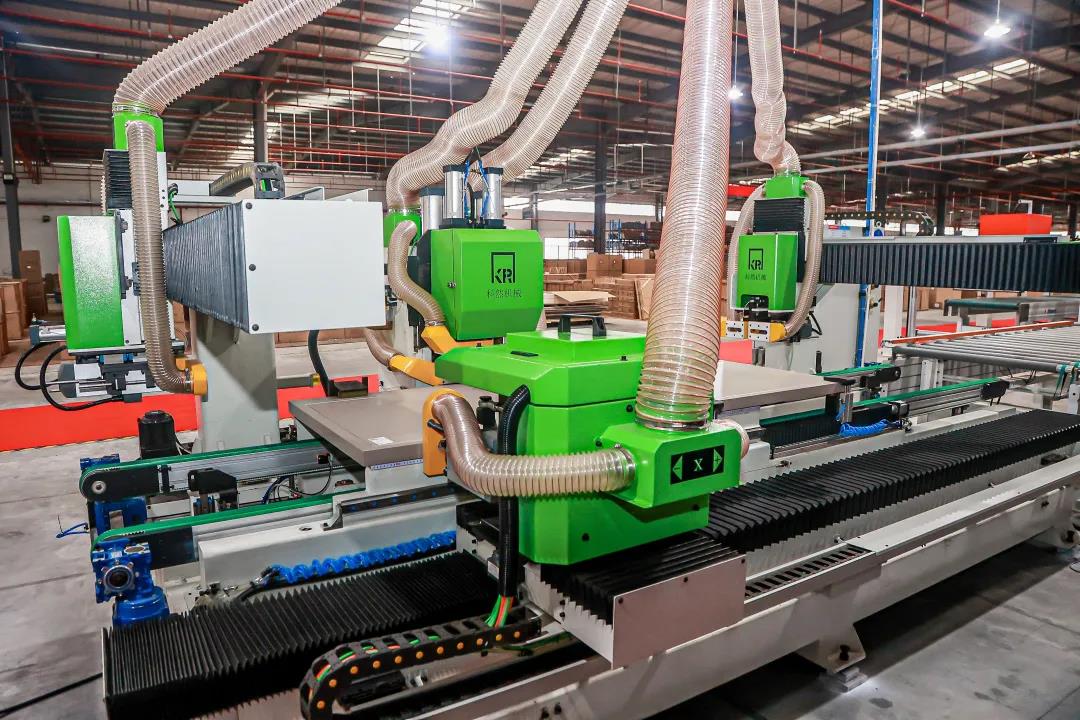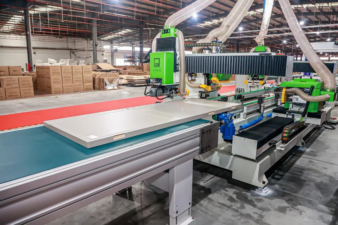 如此高效的生產(chǎn)效率,得益于產(chǎn)線(xiàn)高度數字化的發(fā)展,從開(kāi)料、包裝到運輸交付,均為智能先進(jìn)數控設備,并擁有數控雕刻機、高精度電子鋸、微波壓機、自動(dòng)化四邊鋸等諸多行業(yè)先進(jìn)設備。除此之外,整條產(chǎn)線(xiàn)還細化布局和工位設計,充分考慮了安全、高效等操作方式,實(shí)現產(chǎn)品標準化生產(chǎn)。