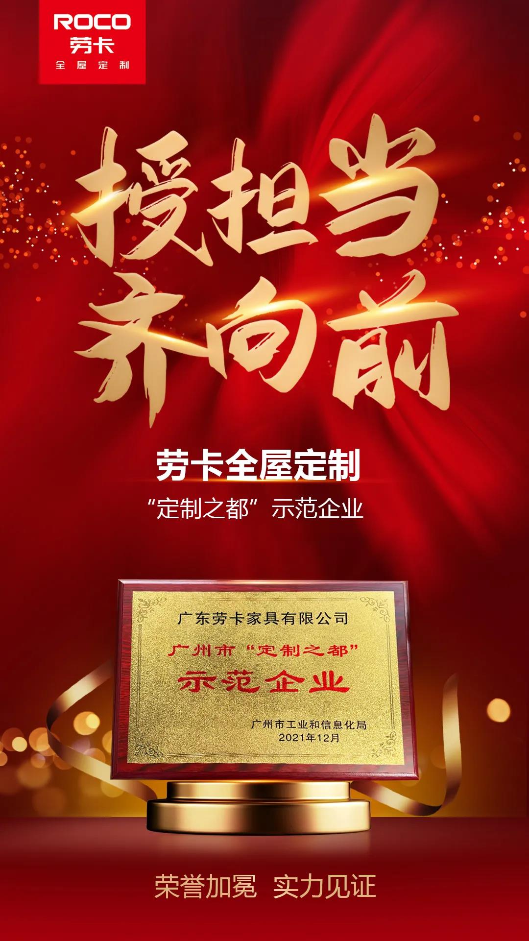 12月9日,廣州市“定制之都”示范企業(yè)授牌儀式在廣州保利世貿博覽館隆重舉行,勞卡全屋定制受邀參加授牌儀式。