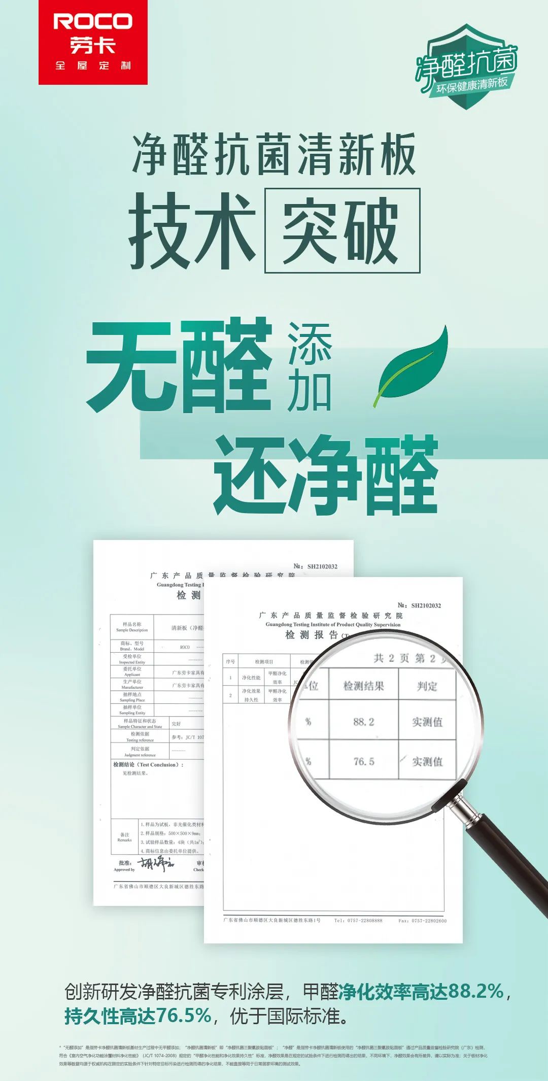 優(yōu)選勞卡凈醛抗菌清新板,打響凈醛抗菌保衛戰,為您量身定制更健康的高品質(zhì)生活,讓健康更“凈”一步!