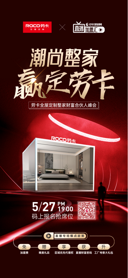 5月27日19:00,潮尚整家·贏(yíng)定勞卡——勞卡全屋定制整家財富合伙人峰會(huì )線(xiàn)上直播,向有意從事定制行業(yè)的創(chuàng )業(yè)家朋友們全面開(kāi)放,現場(chǎng)還將發(fā)布更多品牌新看點(diǎn)、加盟好政策。