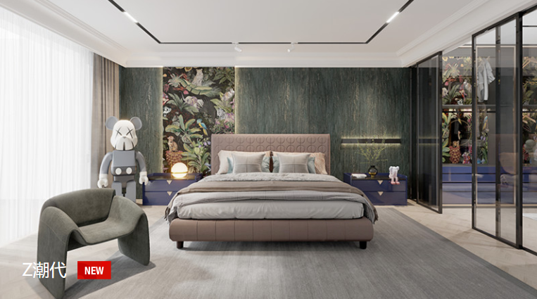 2、色彩多元化,不同于之前相對保守的白色、木色等,現在年輕人更追求設計與個(gè)性,搭配更為多樣化,色彩也更加豐富。各種時(shí)尚圈流行的高級灰,或者跳躍而極具活力的亮色,帶來(lái)歡快又豐富的臥室氛圍,表達了收納設計的新鮮感。