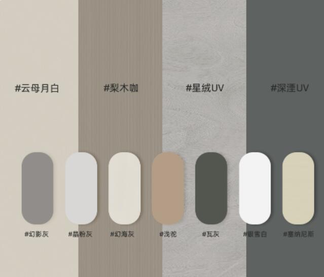 新一代UV準分子親膚板花色豐富、造型齊全,色彩自然逼真又有質(zhì)感。不管你想要高級格調的輕奢風(fēng)、清新治愈的原木風(fēng),新一代準分子親膚板都有合適的花色可供選擇。