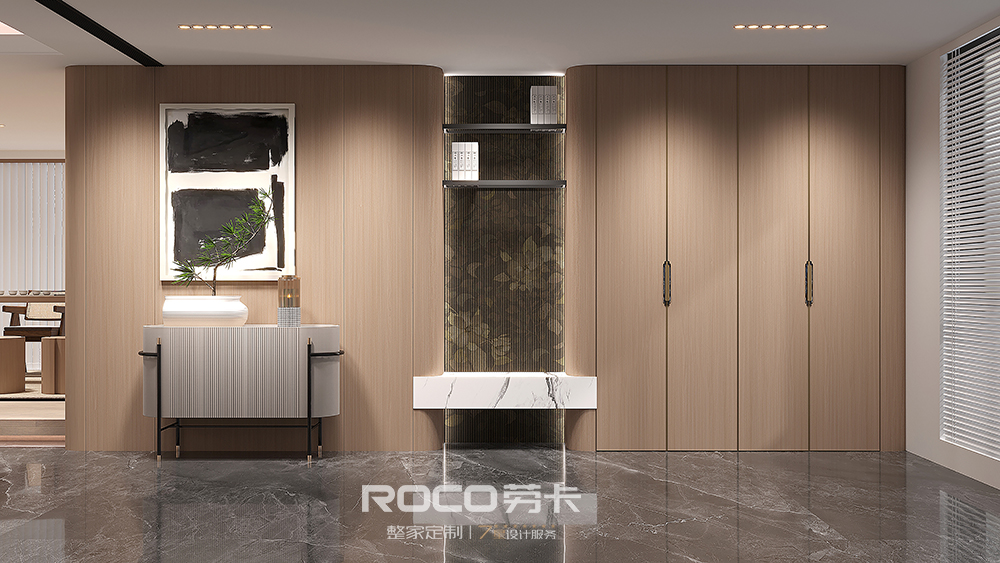 風(fēng)格定位:新中式 系列特點(diǎn):簡(jiǎn)潔明快 · 海棠花元素 · 柜墻門(mén)配一體 以中性偏灰的自然木紋色為主調,融入海棠花元素,使用現代設計手法,摒除傳統中式的深沉、厚重之感,以新時(shí)代審美打造簡(jiǎn)潔明快的新中式風(fēng)空間美感。